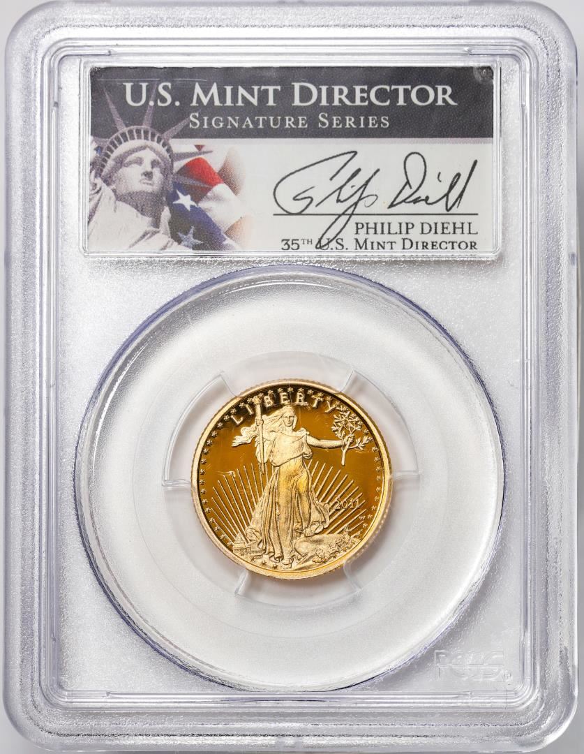 One 2011-W $10 Proof American Gold Eagle Coin PCGS PR70DCAM Philip Diehl Signature. PCGS Graded.