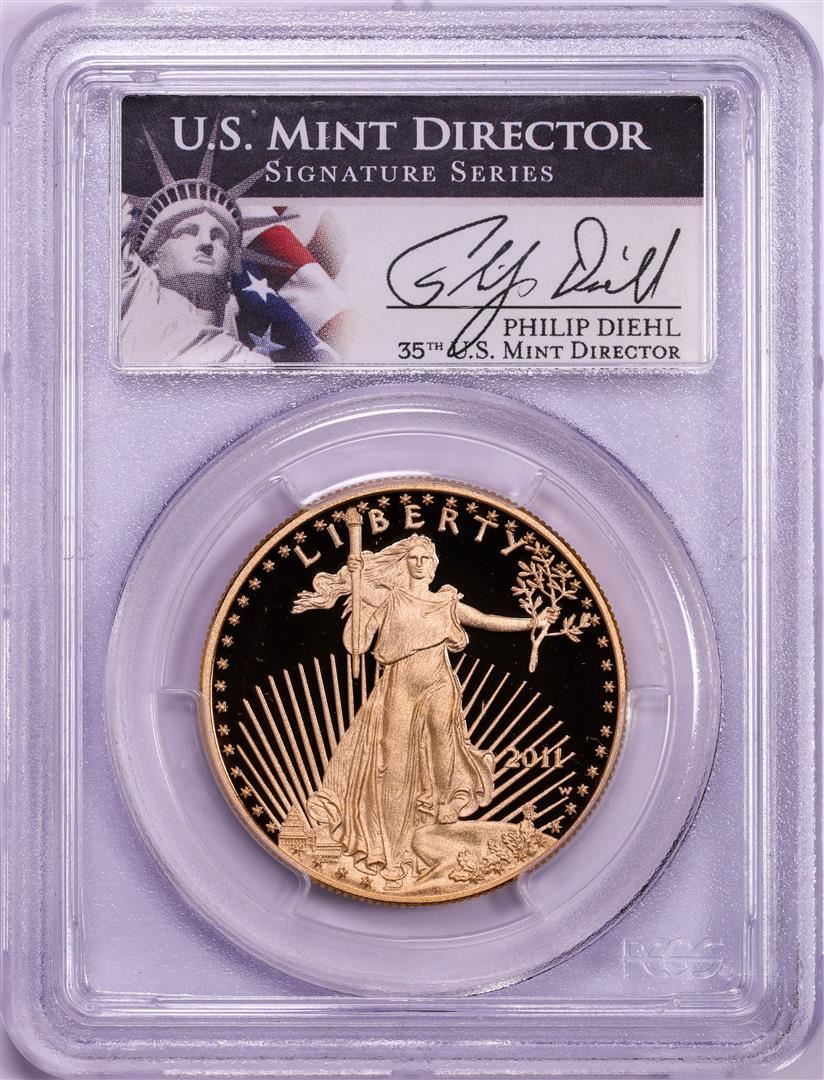 One 2011-W $50 Proof American Gold Eagle Coin PCGS PR70DCAM Philip Diehl Signature. PCGS Graded.