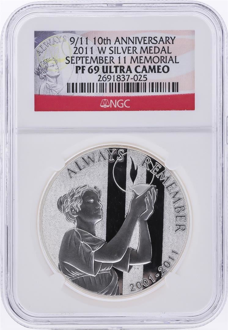 One 2011-W 9/11 10th Anniversary Silver Medal NGC PF69 Ultra Cameo. NGC Certified.