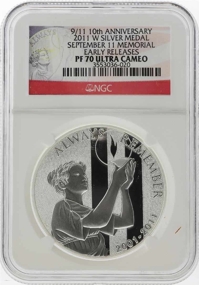 One 2011-W 9/11 10th Anniversary Silver Medal NGC PF70 Ultra Cameo Early Release. NGC Certified.