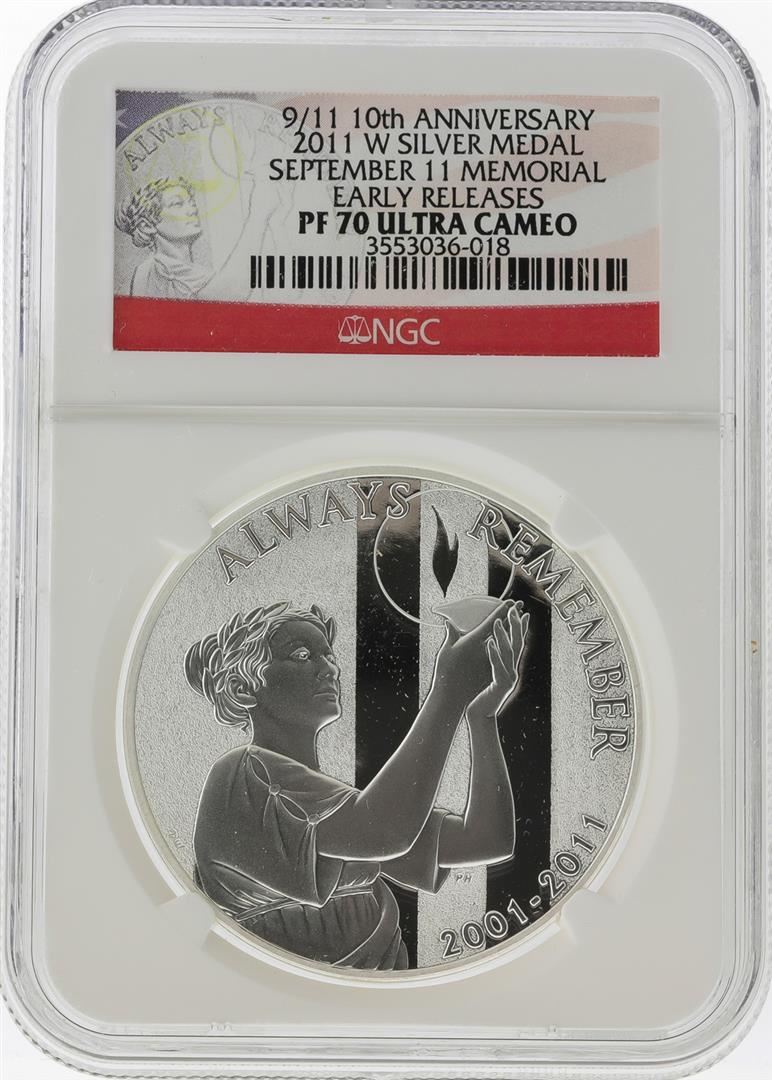 One 2011-W 9/11 10th Anniversary Silver Medal NGC PF70 Ultra Cameo Early Release. NGC Certified.