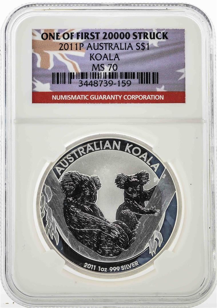 One 2011P $1 Australia Koala Silver Coin NGC MS70. NGC Certified.