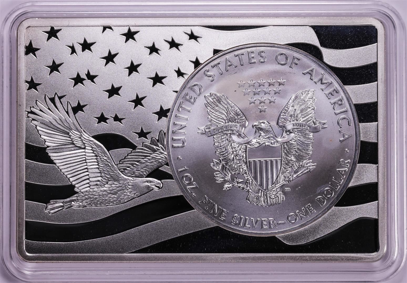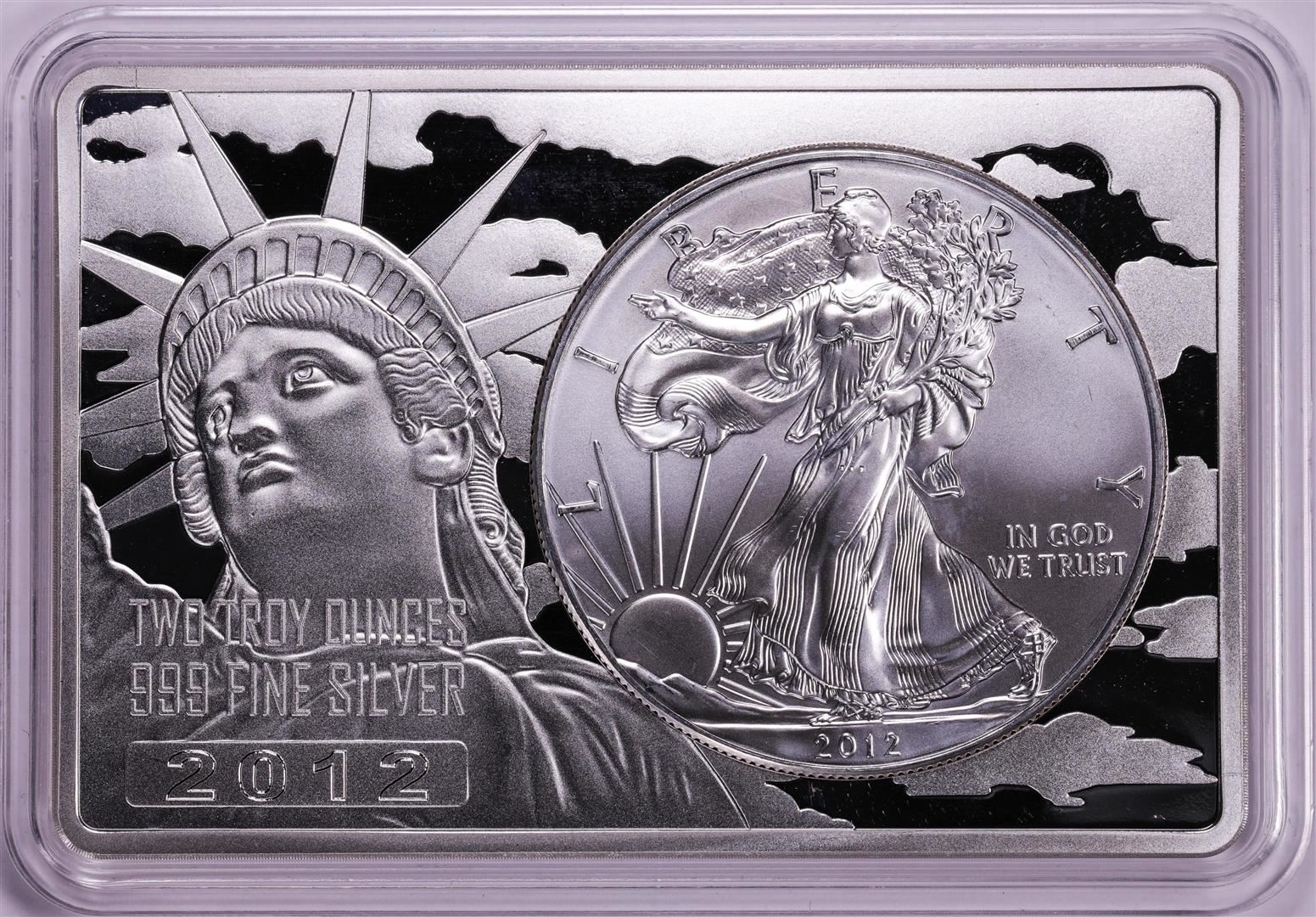 One 2012 $1 American Silver Eagle Coin & 2oz Silver Bar Set.
