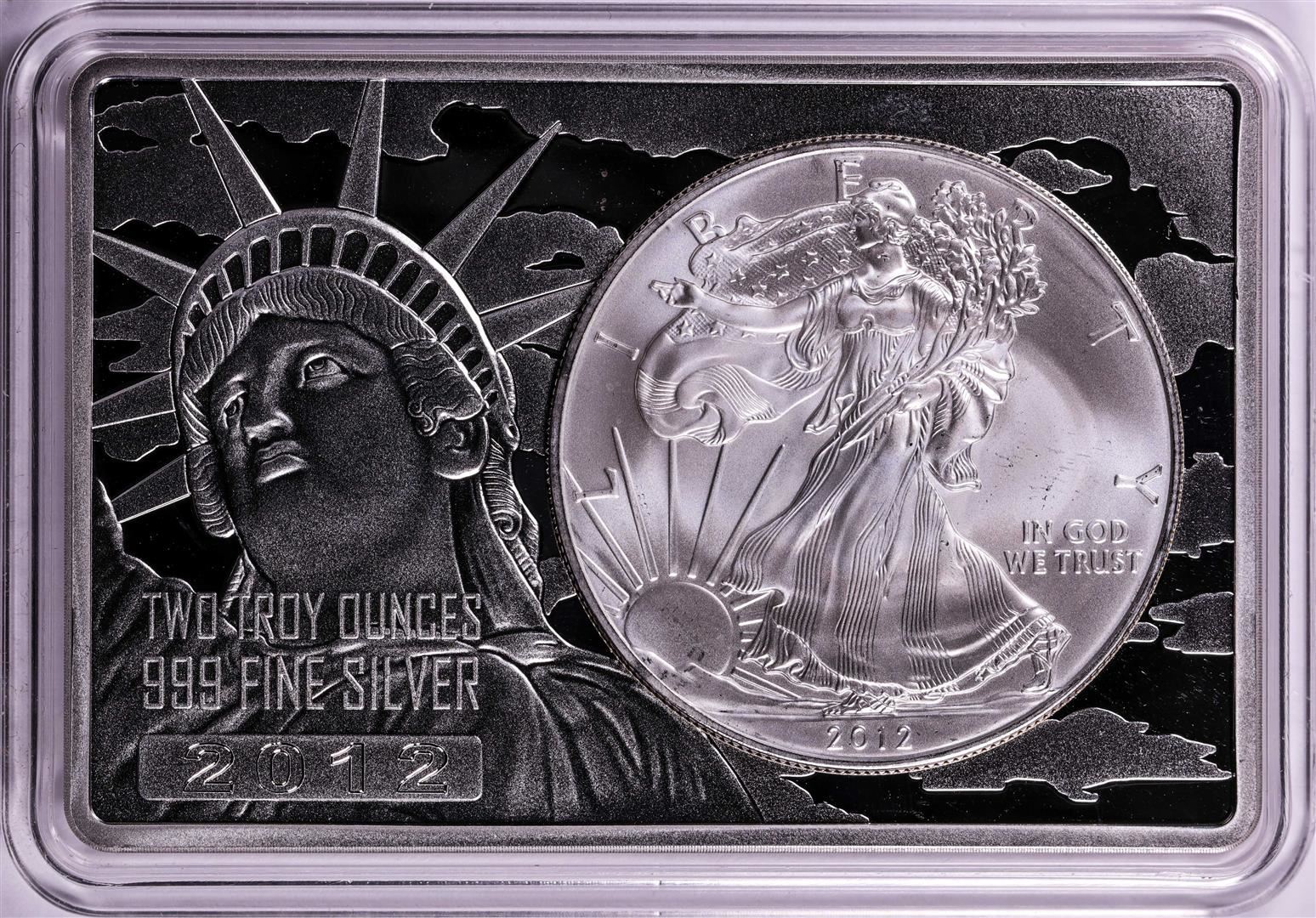 One 2012 $1 American Silver Eagle Coin & 2oz Silver Bar Set.