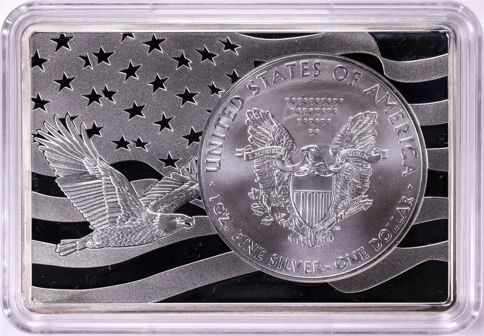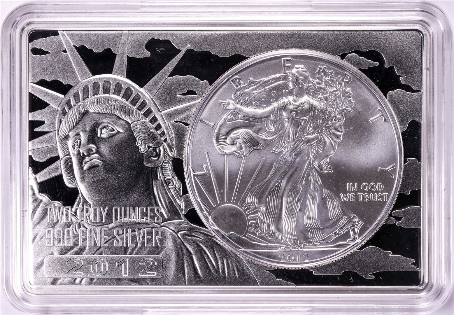 One 2012 $1 American Silver Eagle Coin & 2oz Silver Bar Set.