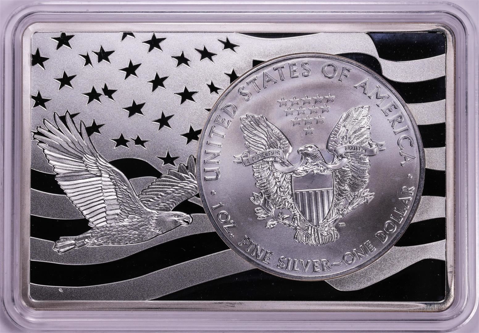 One 2012 $1 American Silver Eagle Coin & 2oz Silver Bar Set.