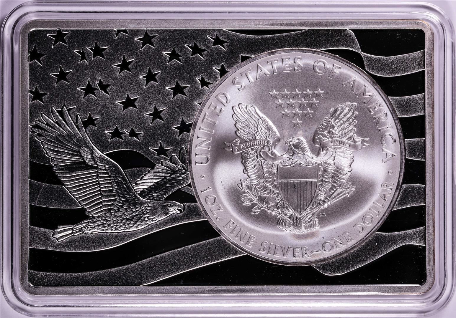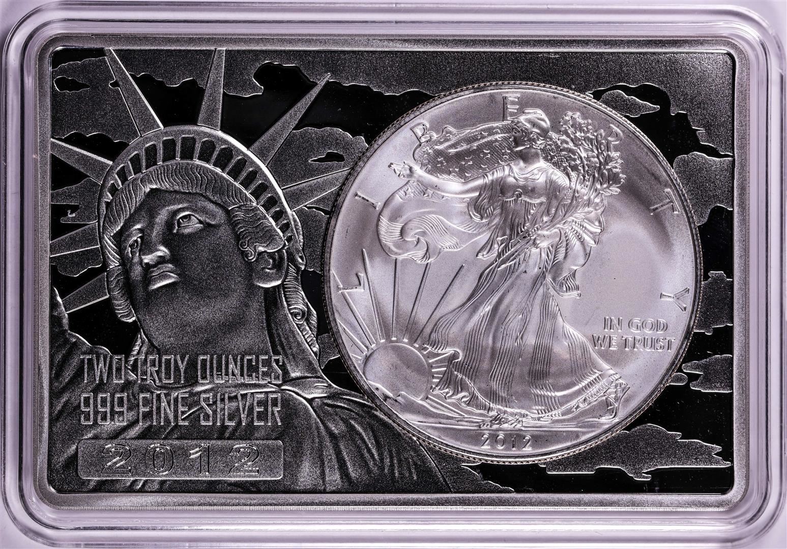 One 2012 $1 American Silver Eagle Coin & 2oz Silver Bar Set.