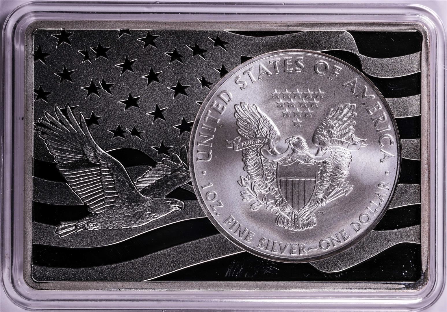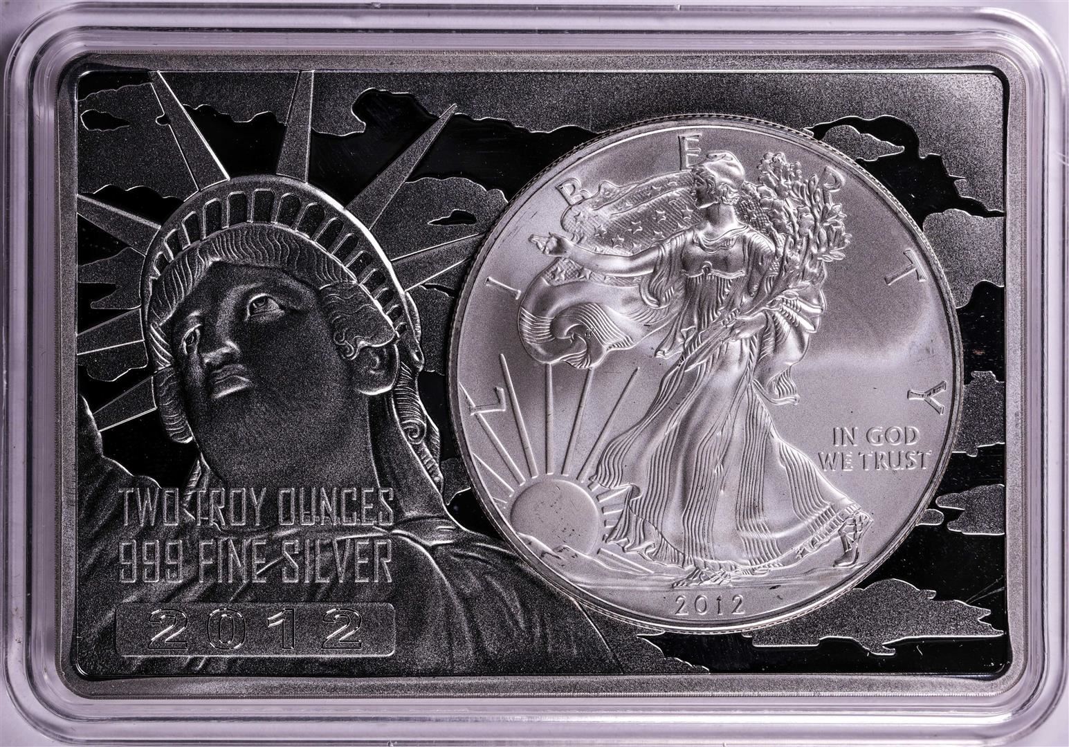 One 2012 $1 American Silver Eagle Coin & 2oz Silver Bar Set.