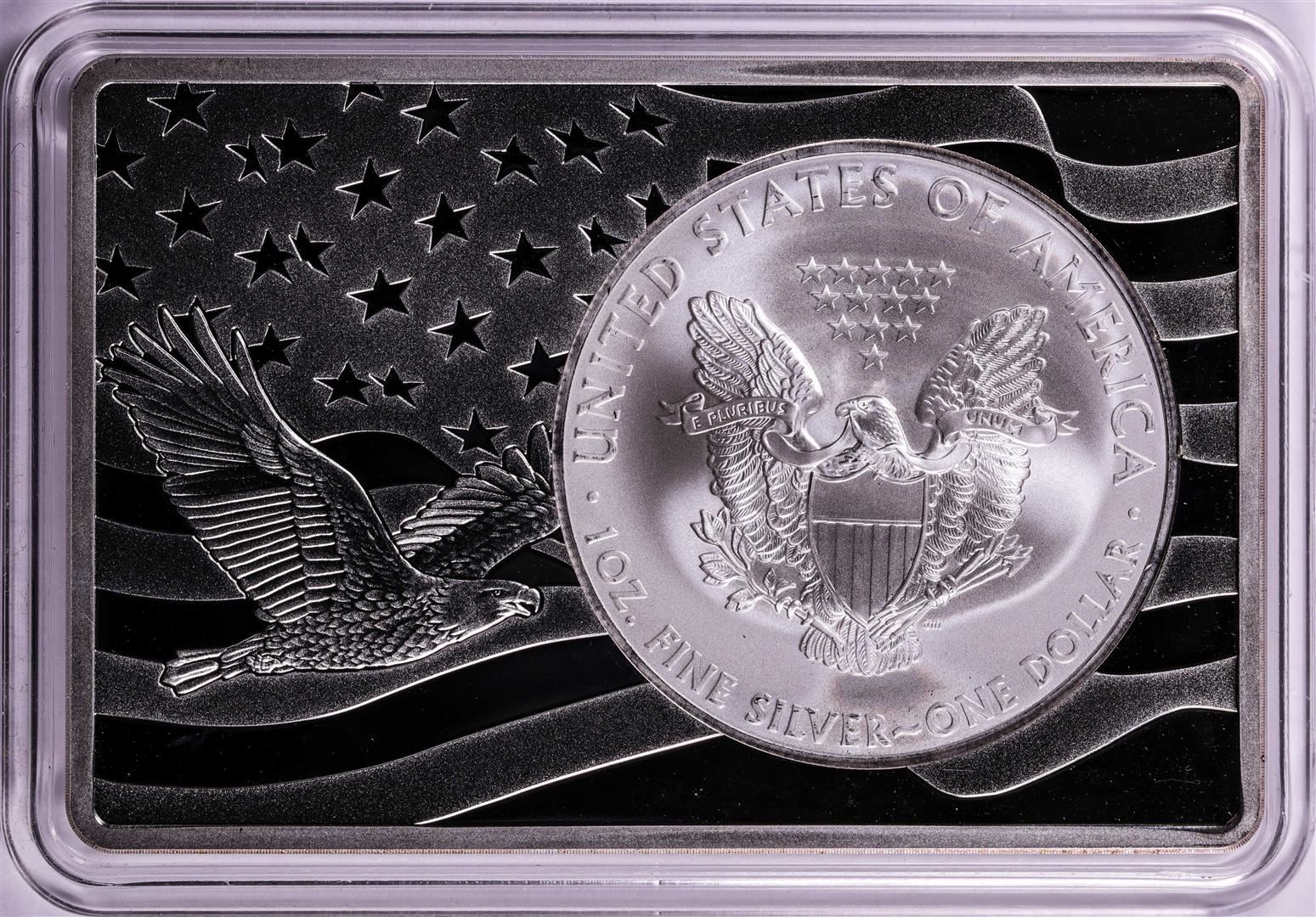 One 2012 $1 American Silver Eagle Coin & 2oz Silver Bar Set.