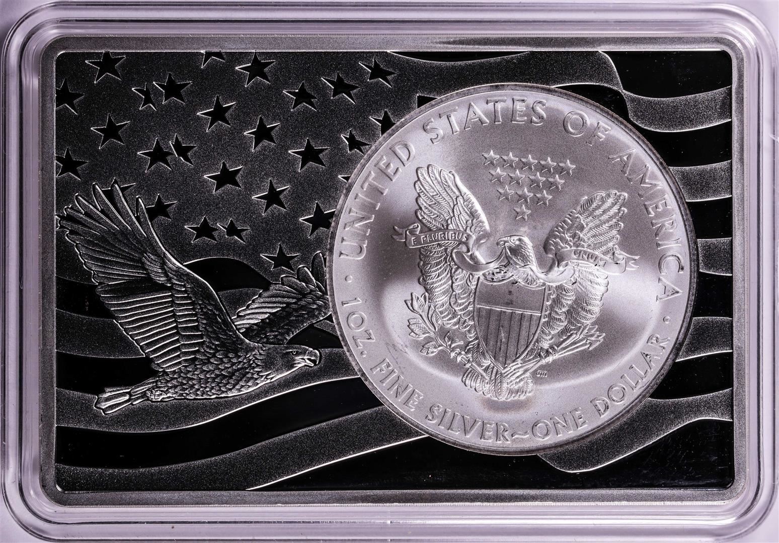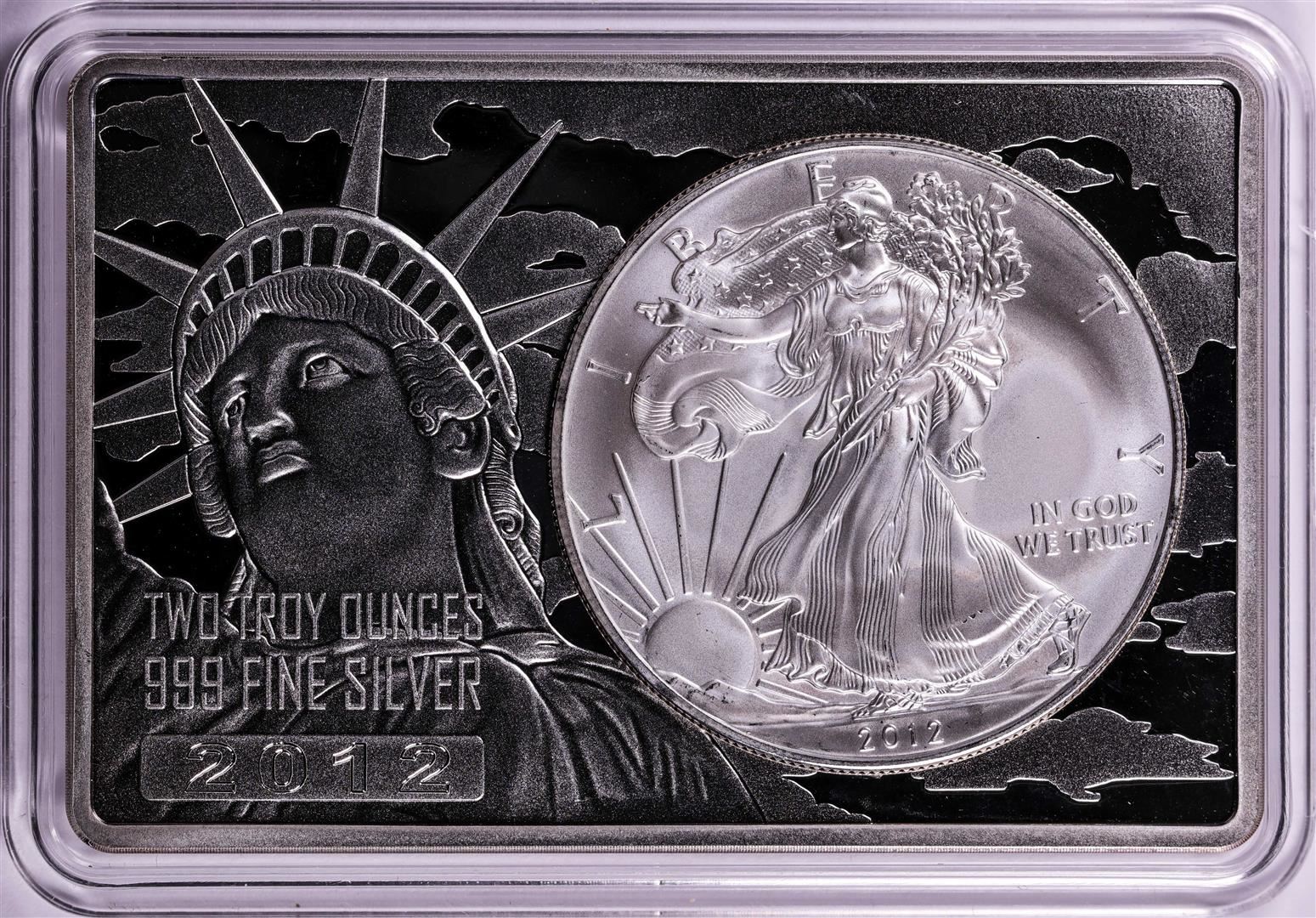 One 2012 $1 American Silver Eagle Coin & 2oz Silver Bar Set.