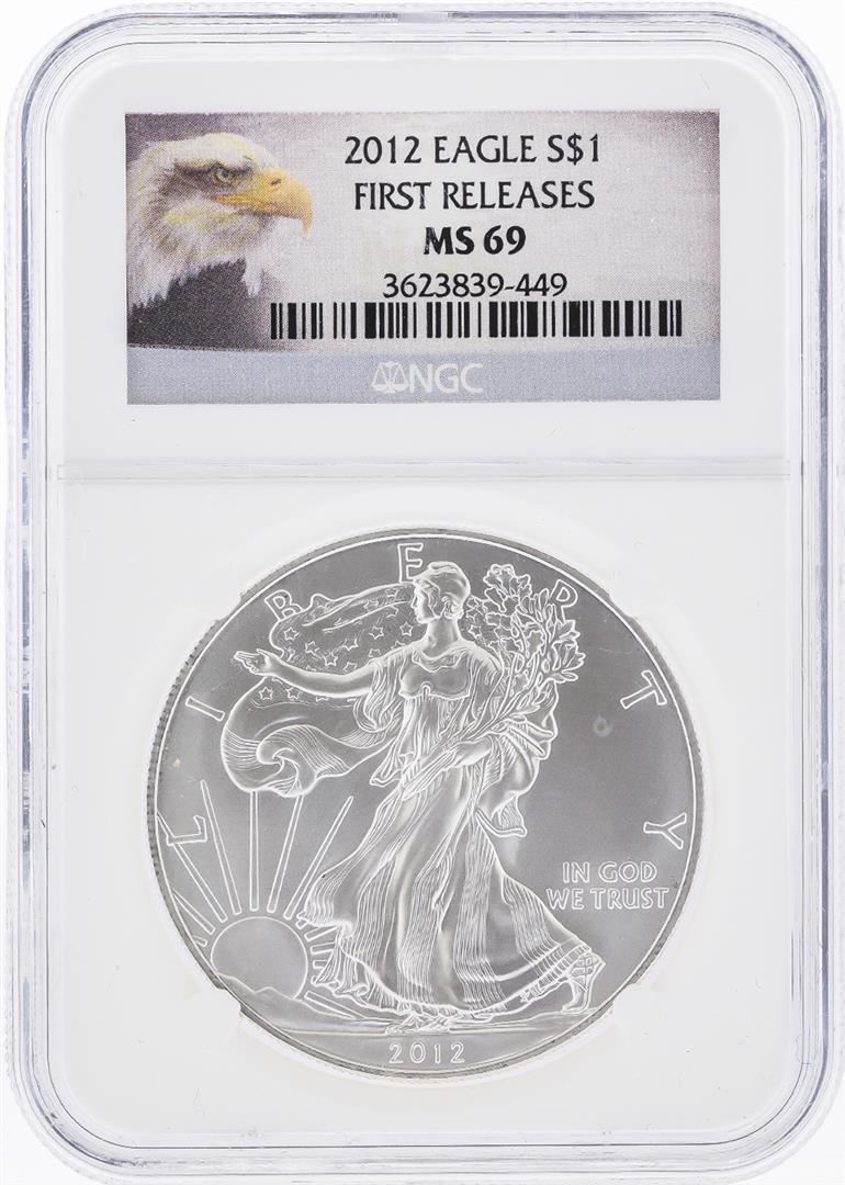One 2012 $1 American Silver Eagle Coin NGC Graded MS69. NGC Certified.
