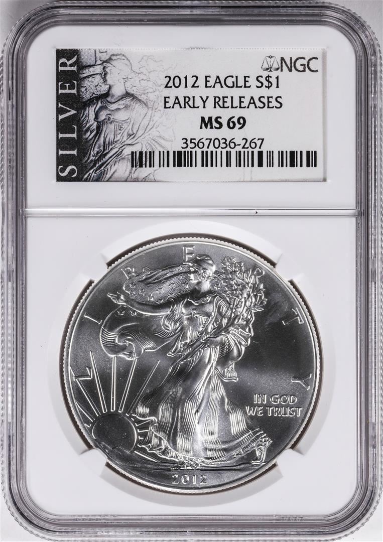 One 2012 $1 American Silver Eagle Coin NGC MS69. NGC Certified.