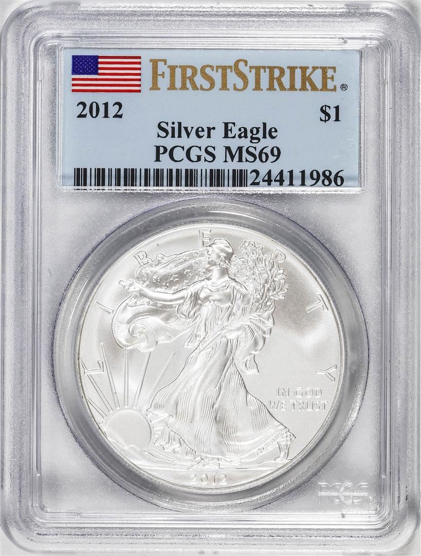 2012 $1 American Silver Eagle Coin PCGS MS69 First Strike