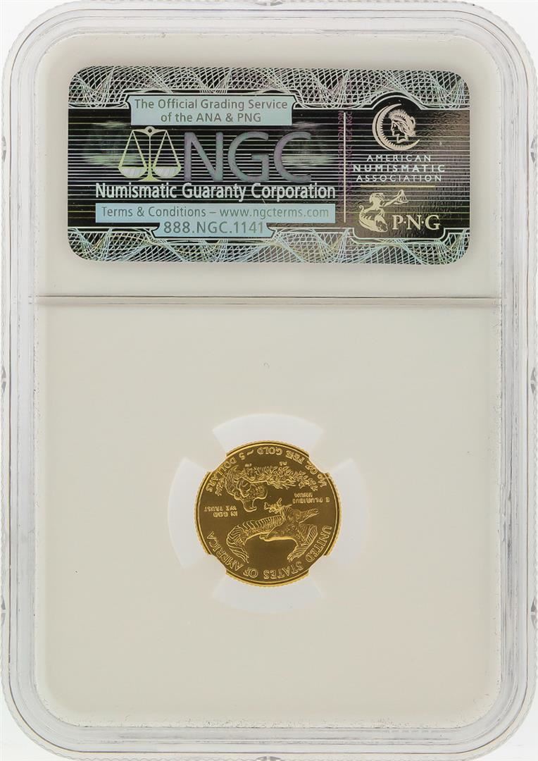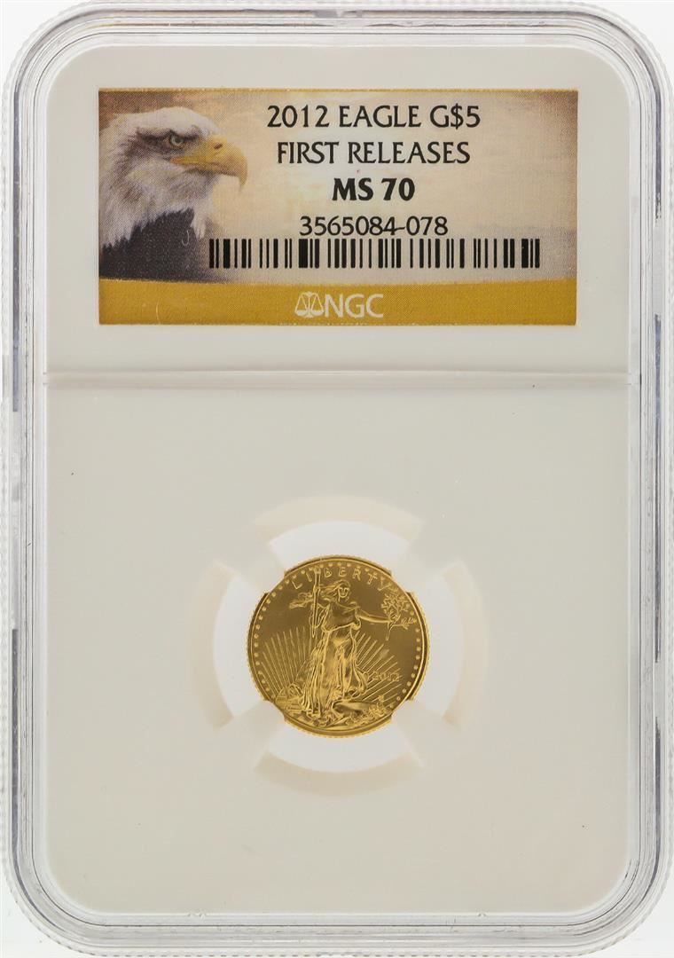 One 2012 $5 1/10 oz. American Eagle Gold Coin NGC MS70. NGC Certified.