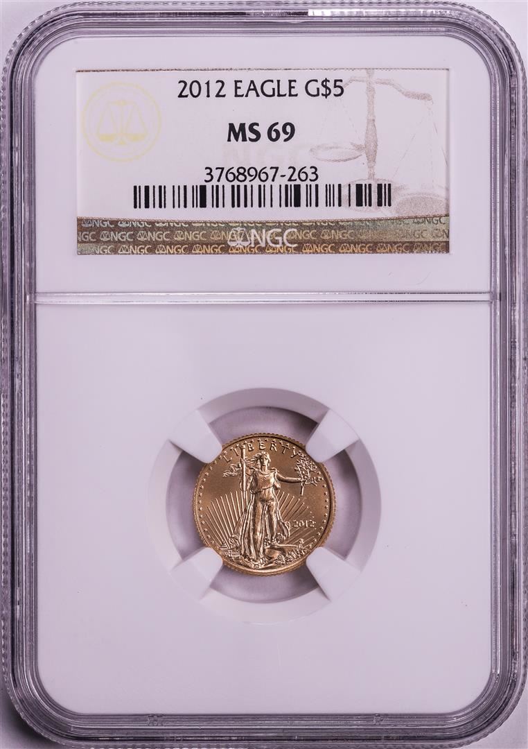 One 2012 $5 American Gold Eagle Coin NGC MS69. NGC Certified.