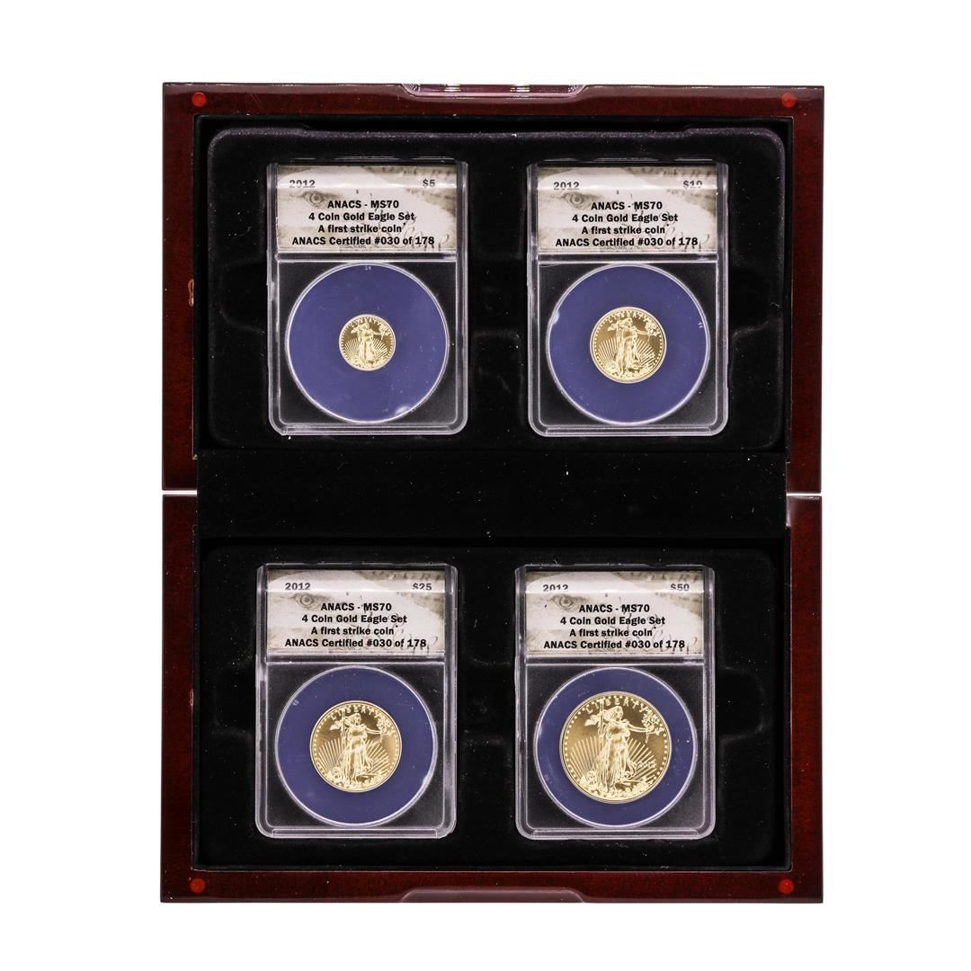 One 2012 American Gold Eagle (4) Coin Set ANACS MS70 First Strike. ANACS Certified.