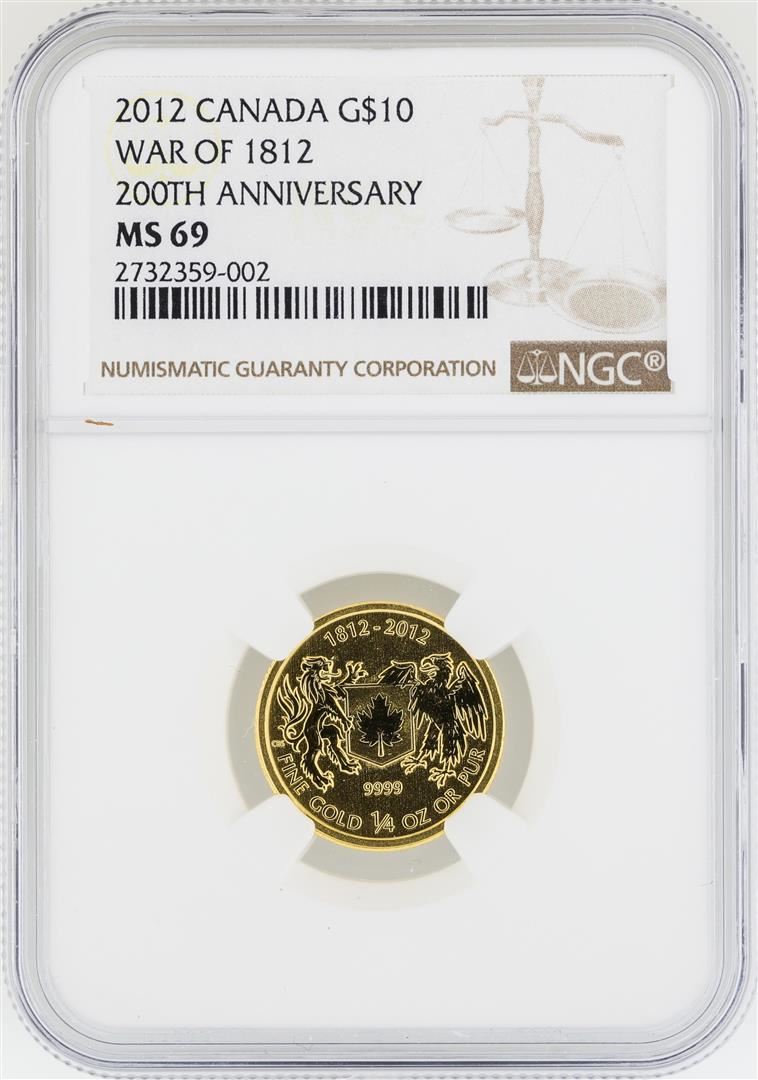 One 2012 Canada $10 War of 1812 200th Anniversary Gold Coin NGC MS69. NGC Certified.