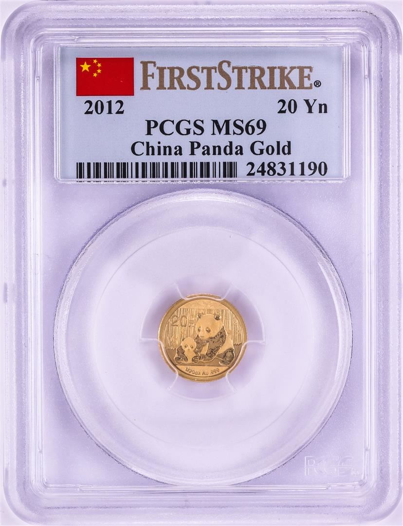 One 2012 China 20 Yuan Panda Gold Coin PCGS MS69 First Strike. PCGS Graded.
