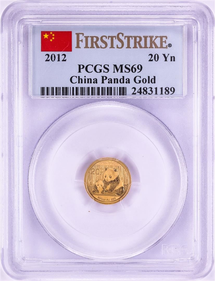 One 2012 China 20 Yuan Panda Gold Coin PCGS MS69 First Strike. PCGS Graded.