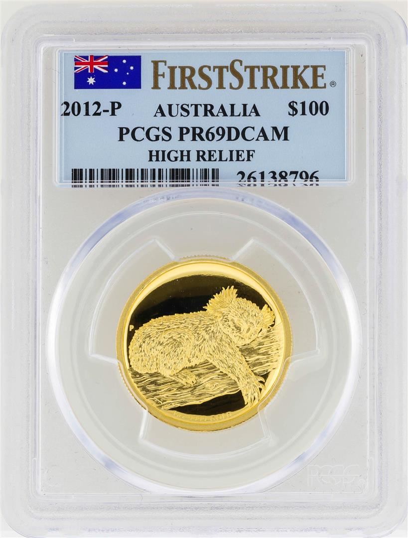 One 2012-P Australia $100 Koala High Relief Gold Coin PCGS PR69DCAM. PCGS Graded.