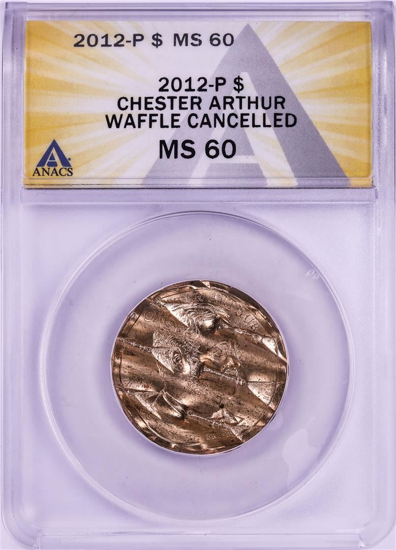 2012-P Chester Arthur Presidential Dollar Waffle Cancelled Coin ANACS MS60