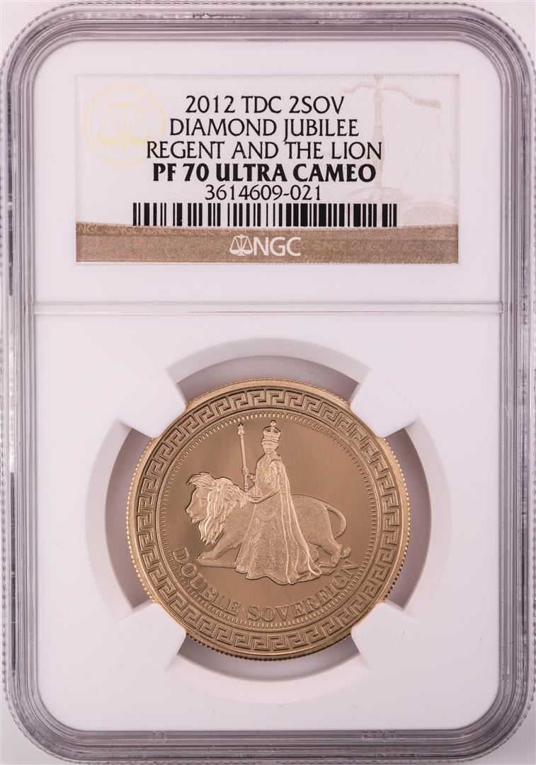 One 2012 Proof Great Britain 2 Sovereign Regent and Lion Gold Coin NGC PF70 Ultra Cameo. NGC Certified.