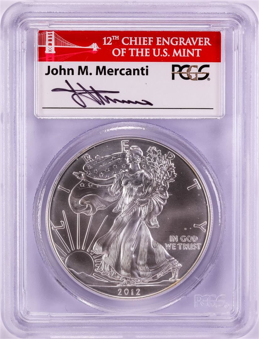2012-(S) $1 American Silver Eagle Coin PCGS MS70 Mercanti Signed San Francisco