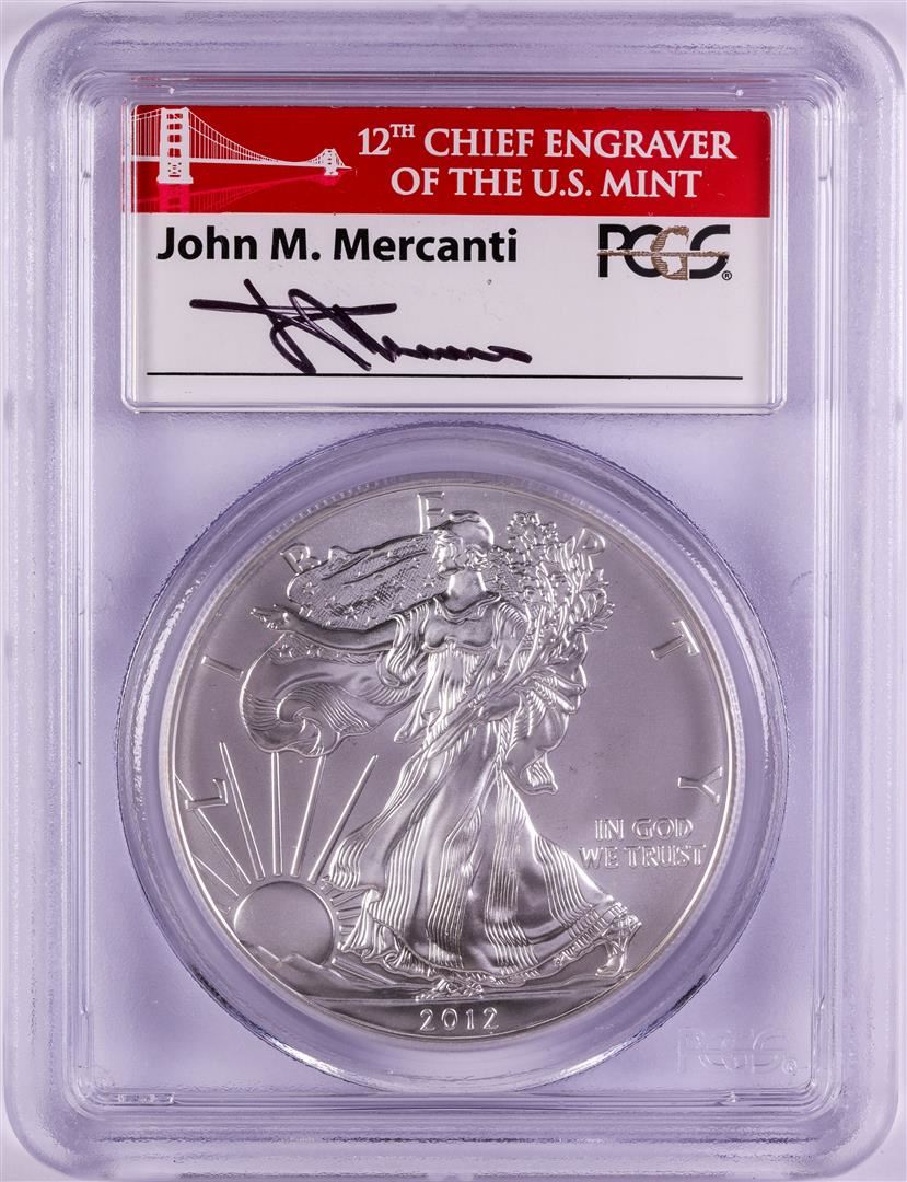 2012-(S) $1 American Silver Eagle Coin PCGS MS70 Mercanti Signed San Francisco