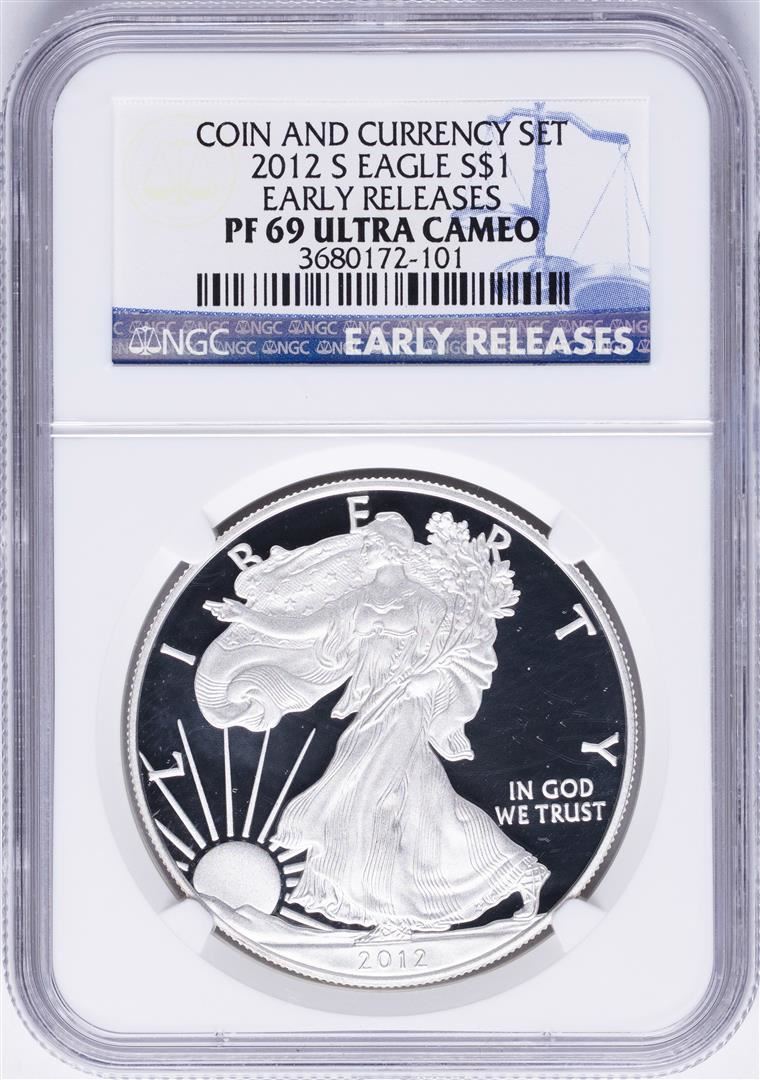 One 2012-S $1 American Silver Eagle Proof Coin NGC PF69 Ultra Cameo Early Releases. NGC Certified.