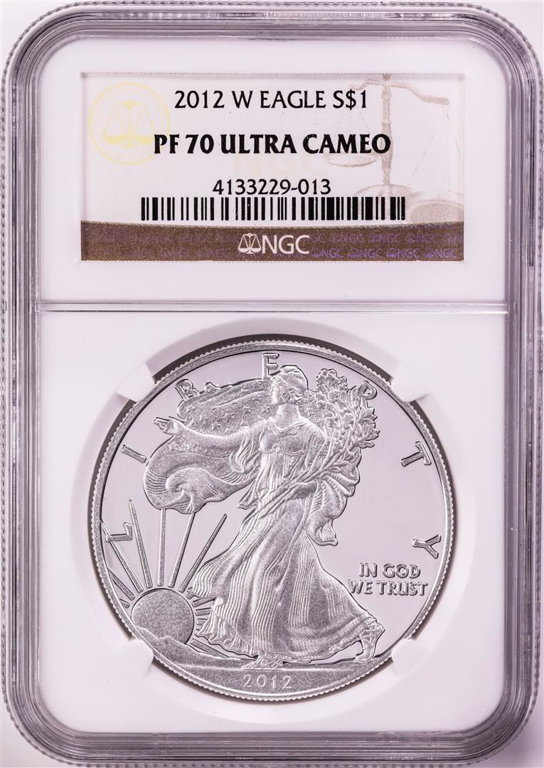 One 2012-W $1 Proof American Silver Eagle Coin NGC PF70 Ultra Cameo. NGC Certified.