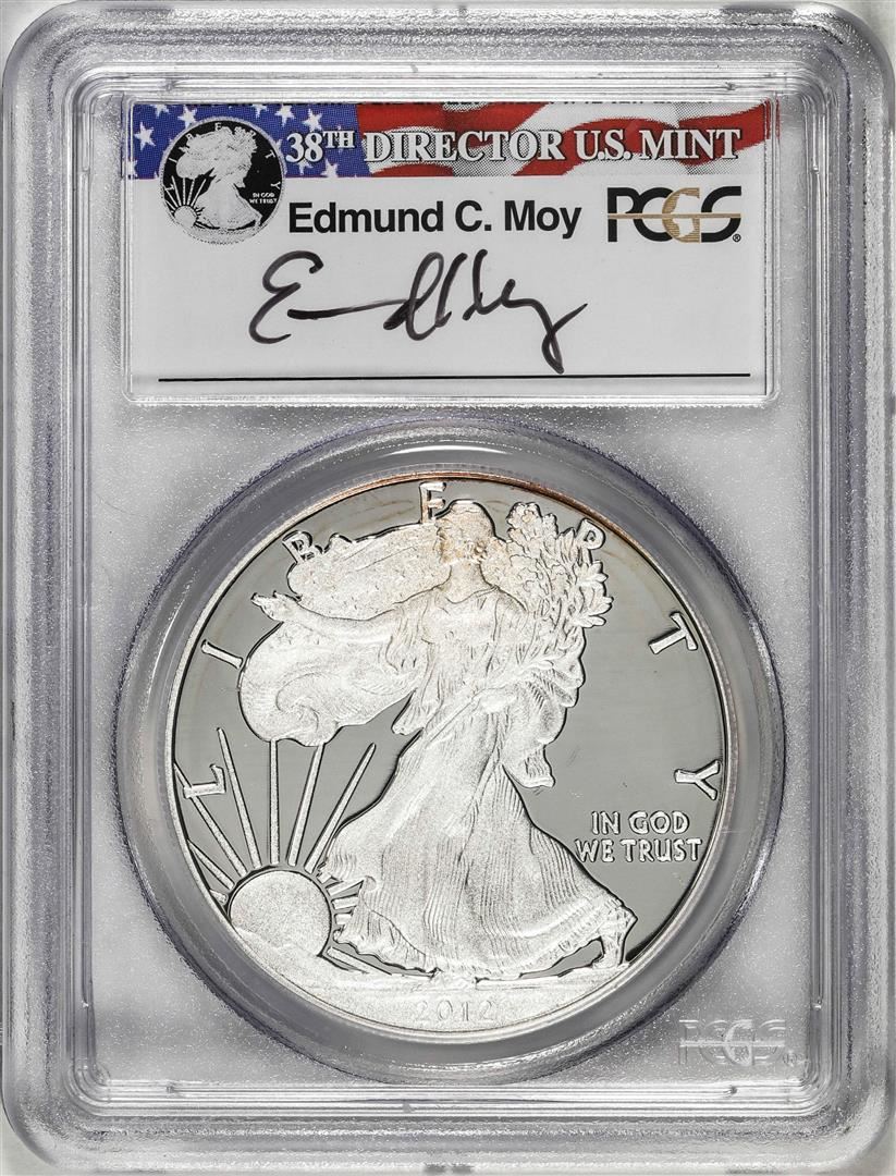 2012-W $1 Proof American Silver Eagle Coin PCGS PR69DCAM Edmund Moy Signature