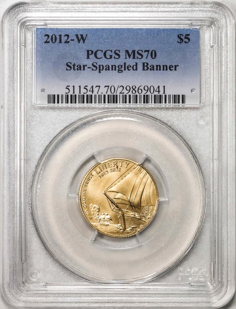One 2012-W $5 Star-Spangled Banner Commemorative Gold Coin PCGS MS70. PCGS Graded.