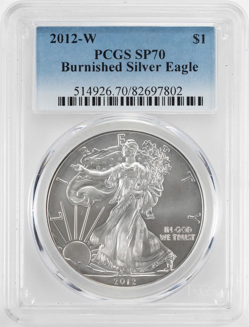 One 2012-W Burnished $1 American Silver Eagle Coin PCGS SP70. PCGS Graded.