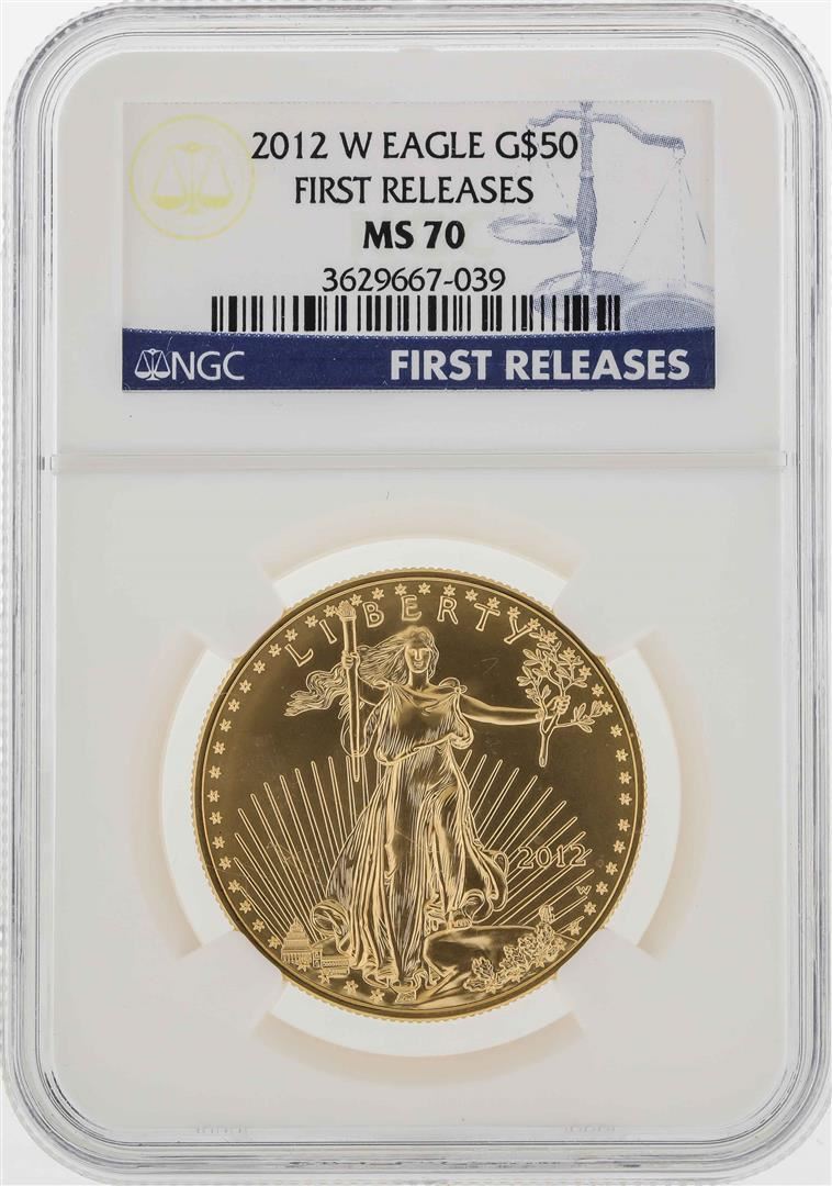 One 2012W $50 American Eagle Gold Coin NGC MS70. NGC Certified.