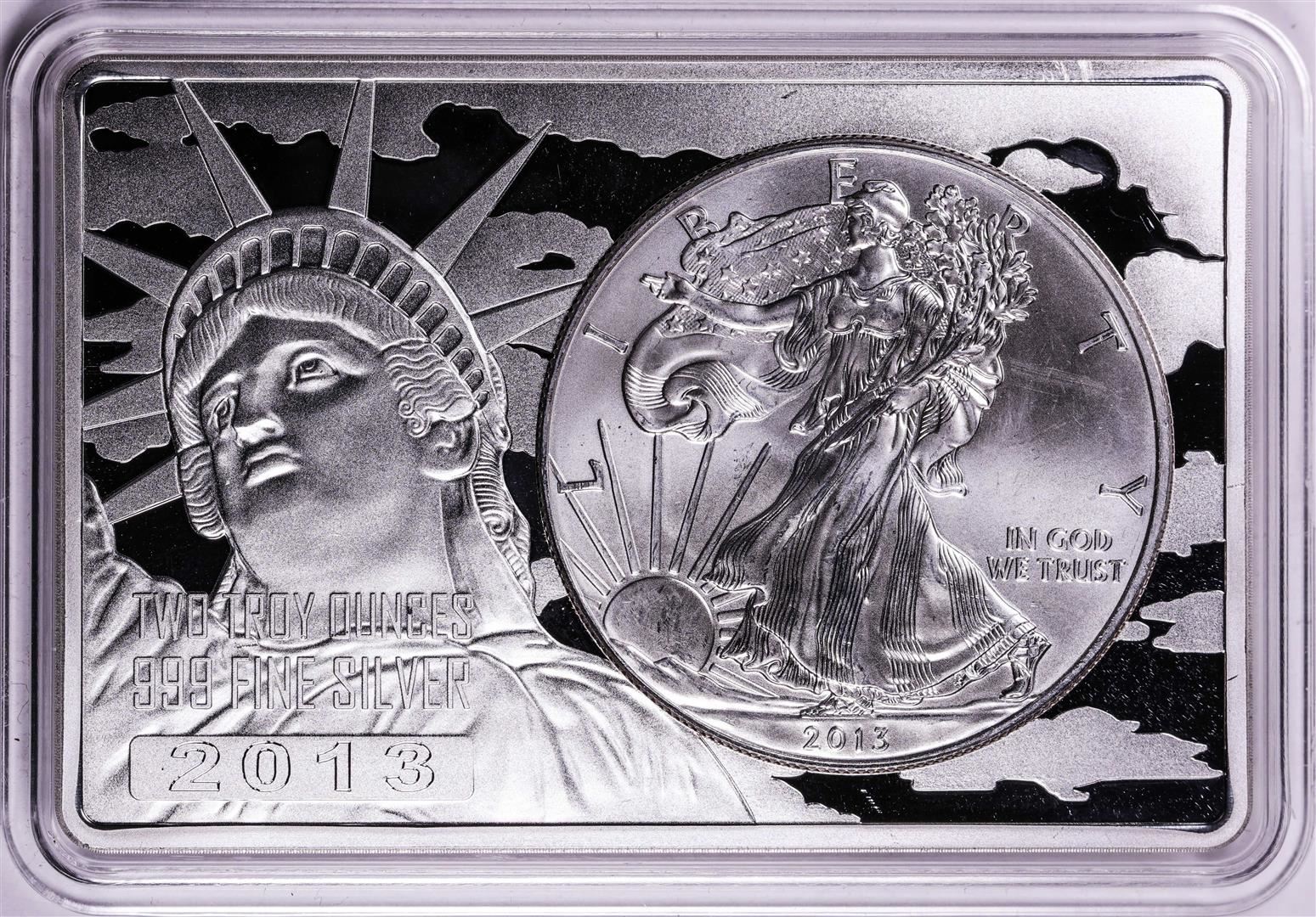 One 2013 $1 American Silver Eagle Coin & 2oz Silver Bar Set.