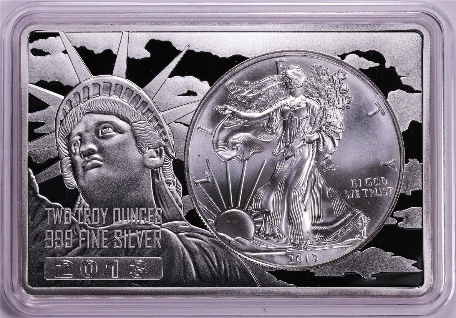 One 2013 $1 American Silver Eagle Coin & 2oz Silver Bar Set.