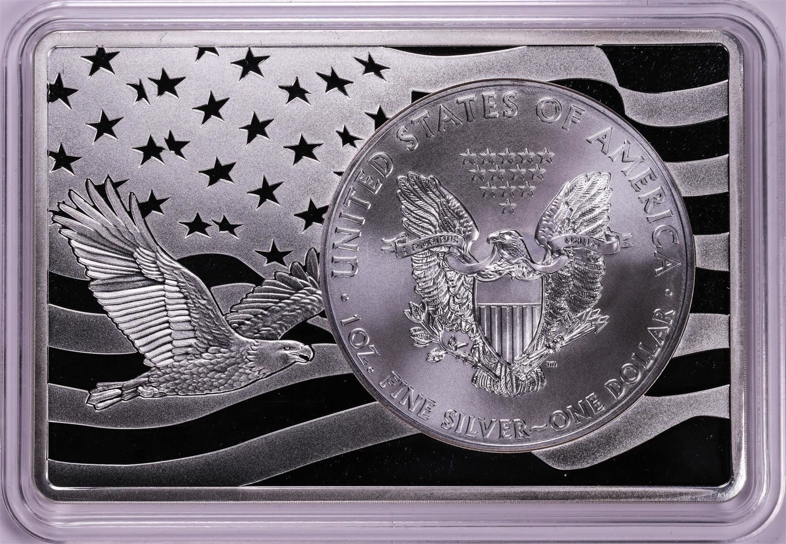 One 2013 $1 American Silver Eagle Coin & 2oz Silver Bar Set.