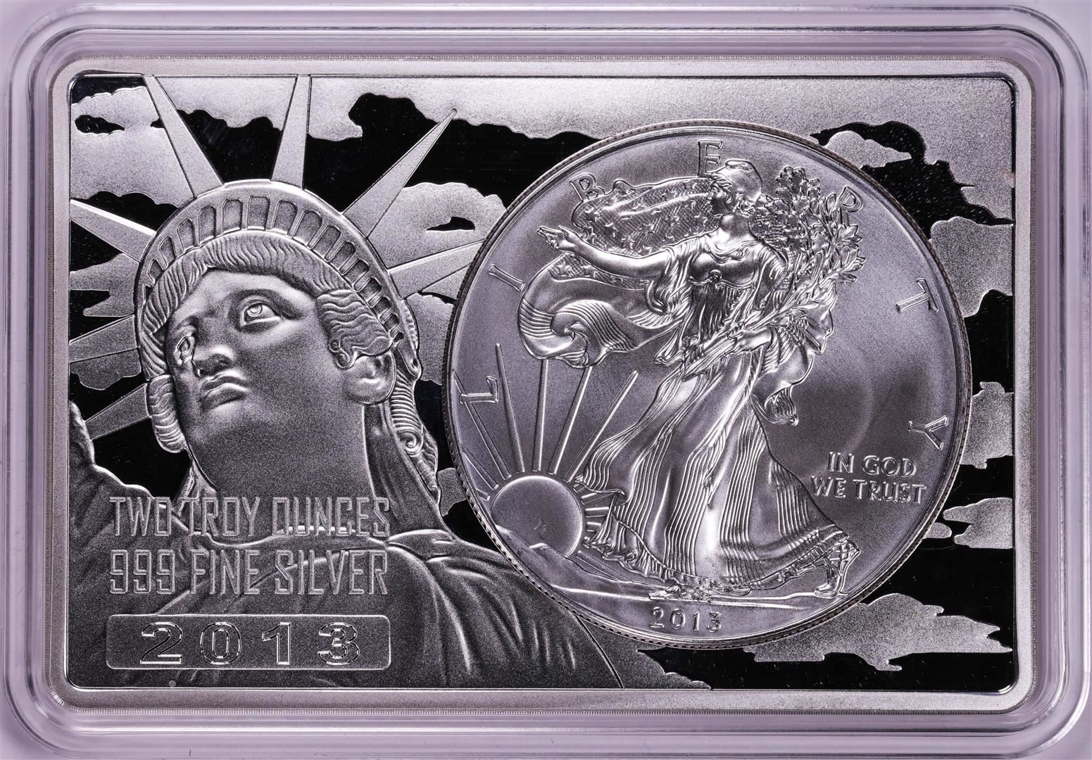 One 2013 $1 American Silver Eagle Coin & 2oz Silver Bar Set.