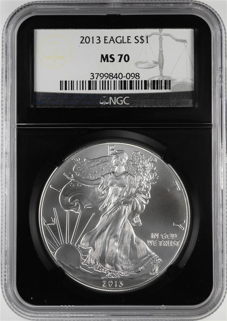 One 2013 $1 American Silver Eagle Coin NGC MS70 Black Core. NGC Certified.