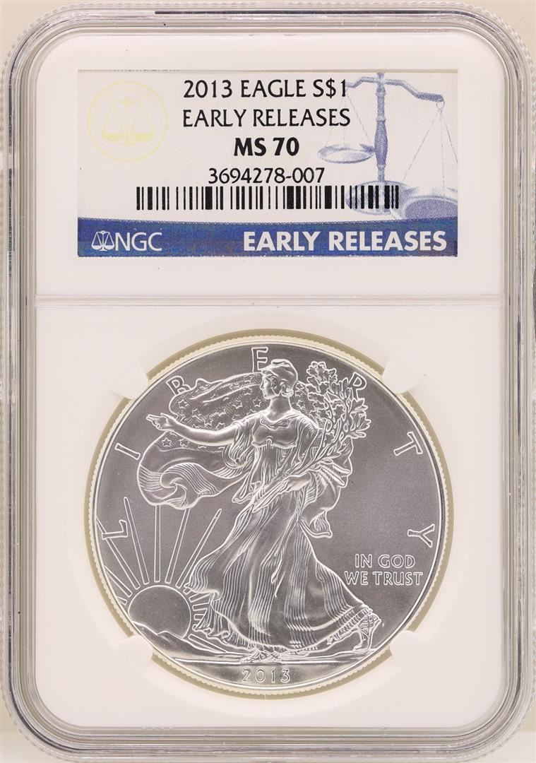 2013 $1 American Silver Eagle Coin NGC MS70 Early Releases