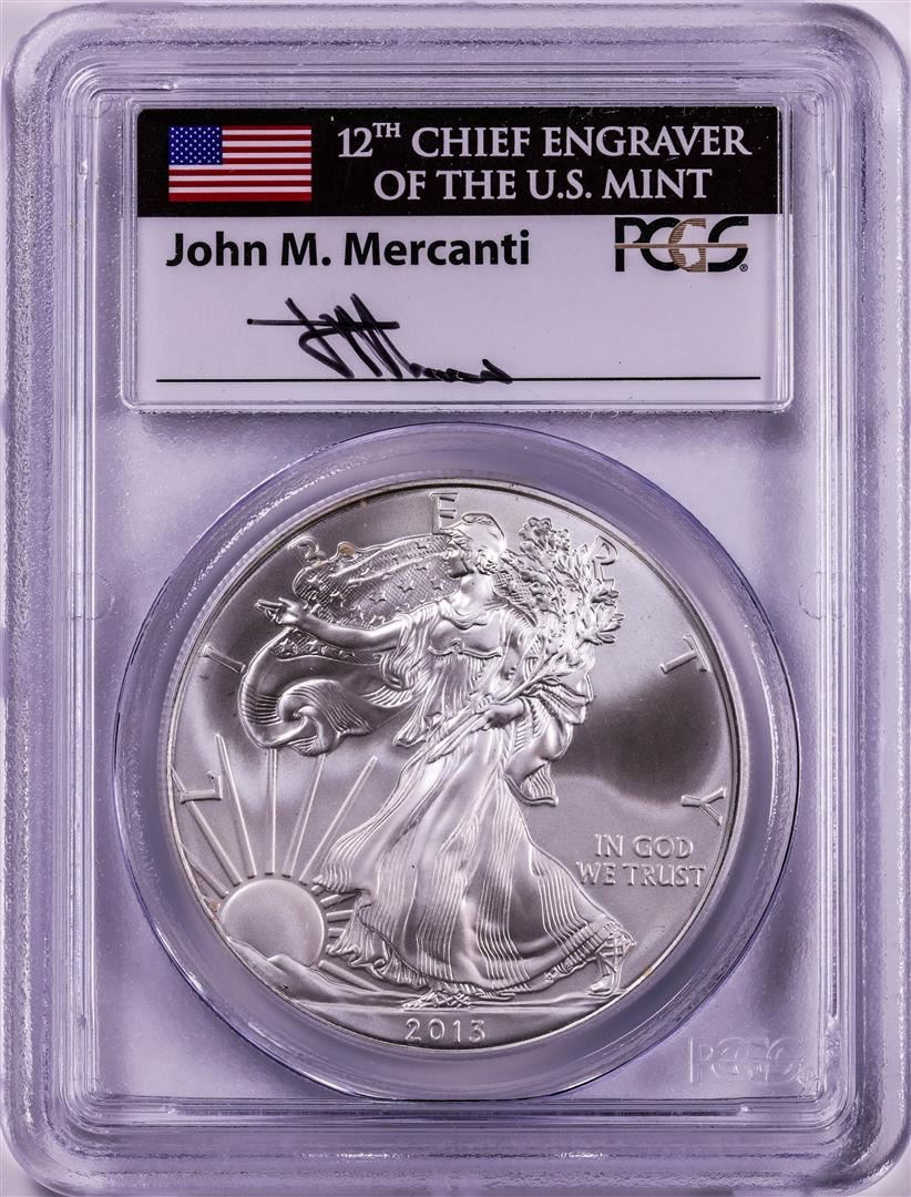 2013 $1 American Silver Eagle Coin PCGS MS69 First Strike Mercanti Signature