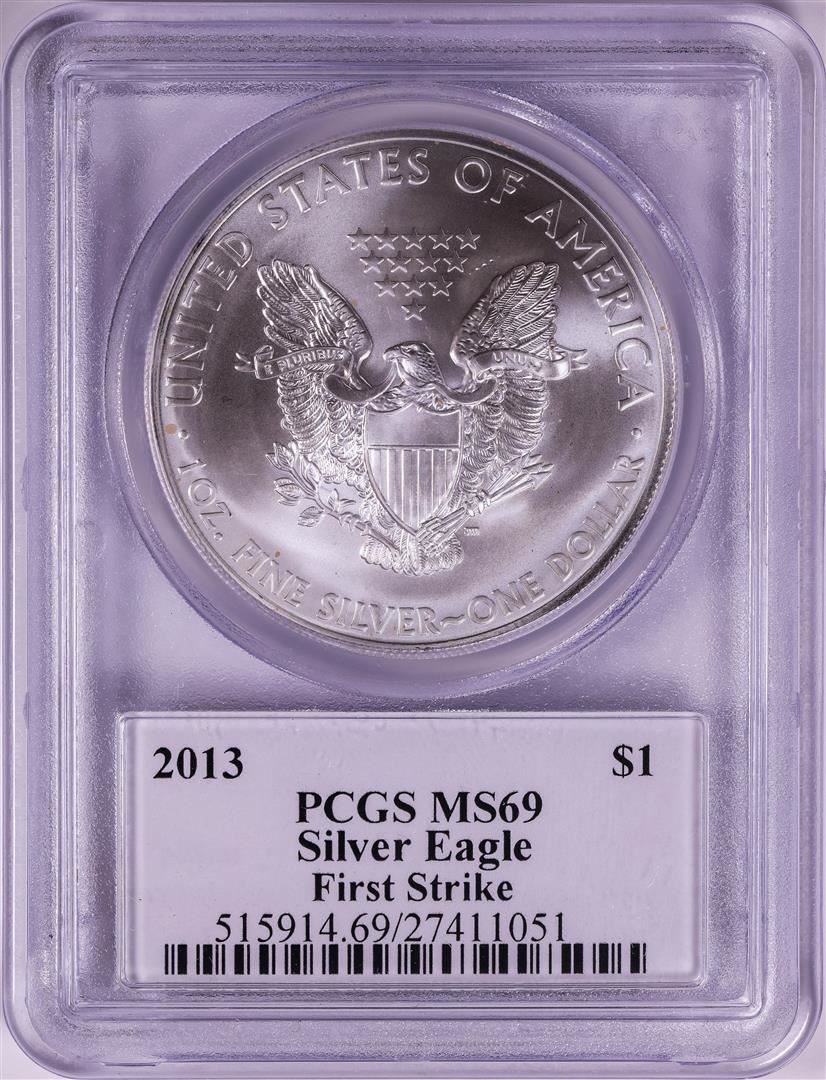 One 2013 $1 American Silver Eagle Coin PCGS MS69 First Strike Mercanti Signature. PCGS Graded.
