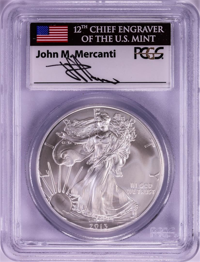 2013 $1 American Silver Eagle Coin PCGS MS70 First Strike John M. Mercanti Signature