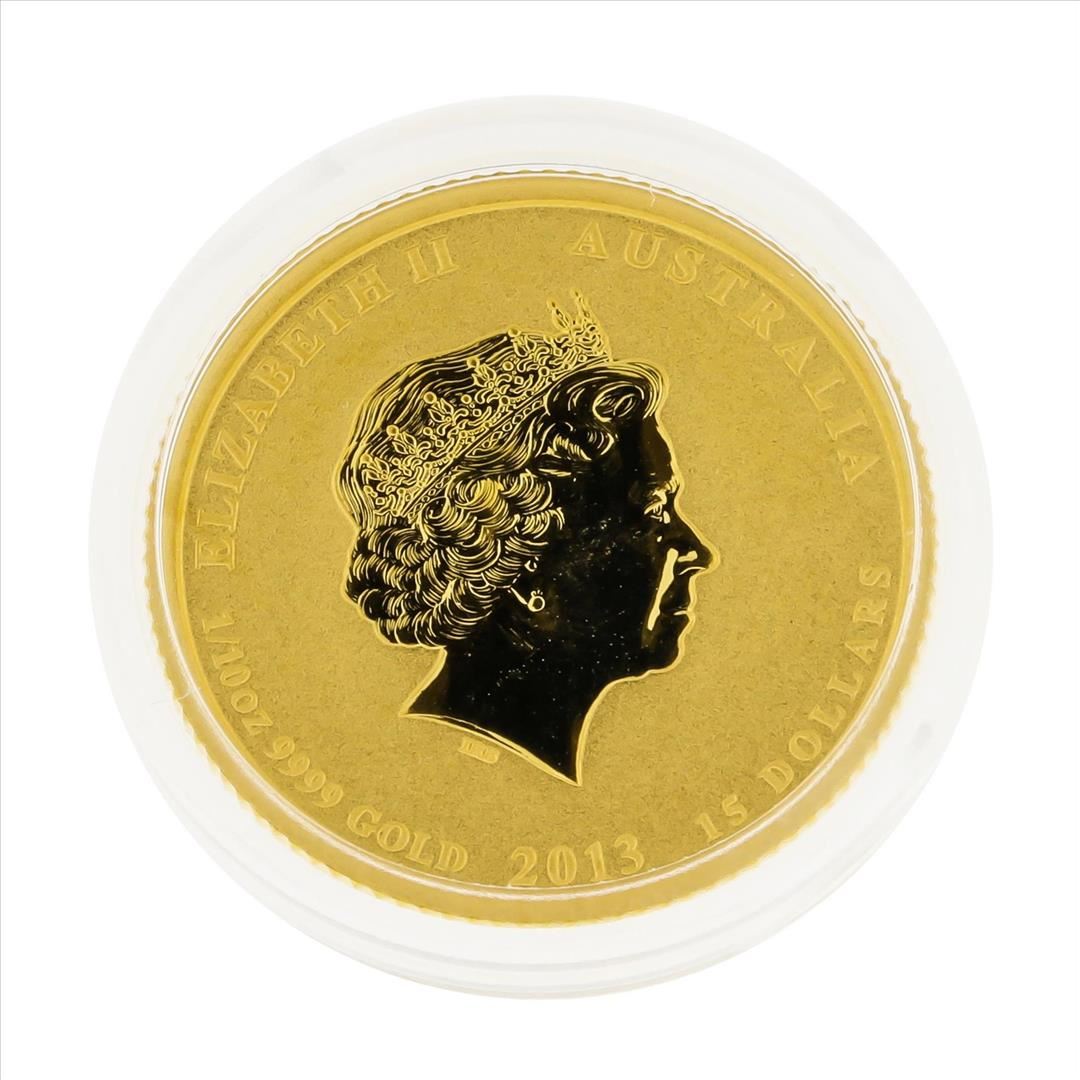 One 2013 $15 Australia 1/10 oz Lunar Year of the Snake Gold Coin BU.