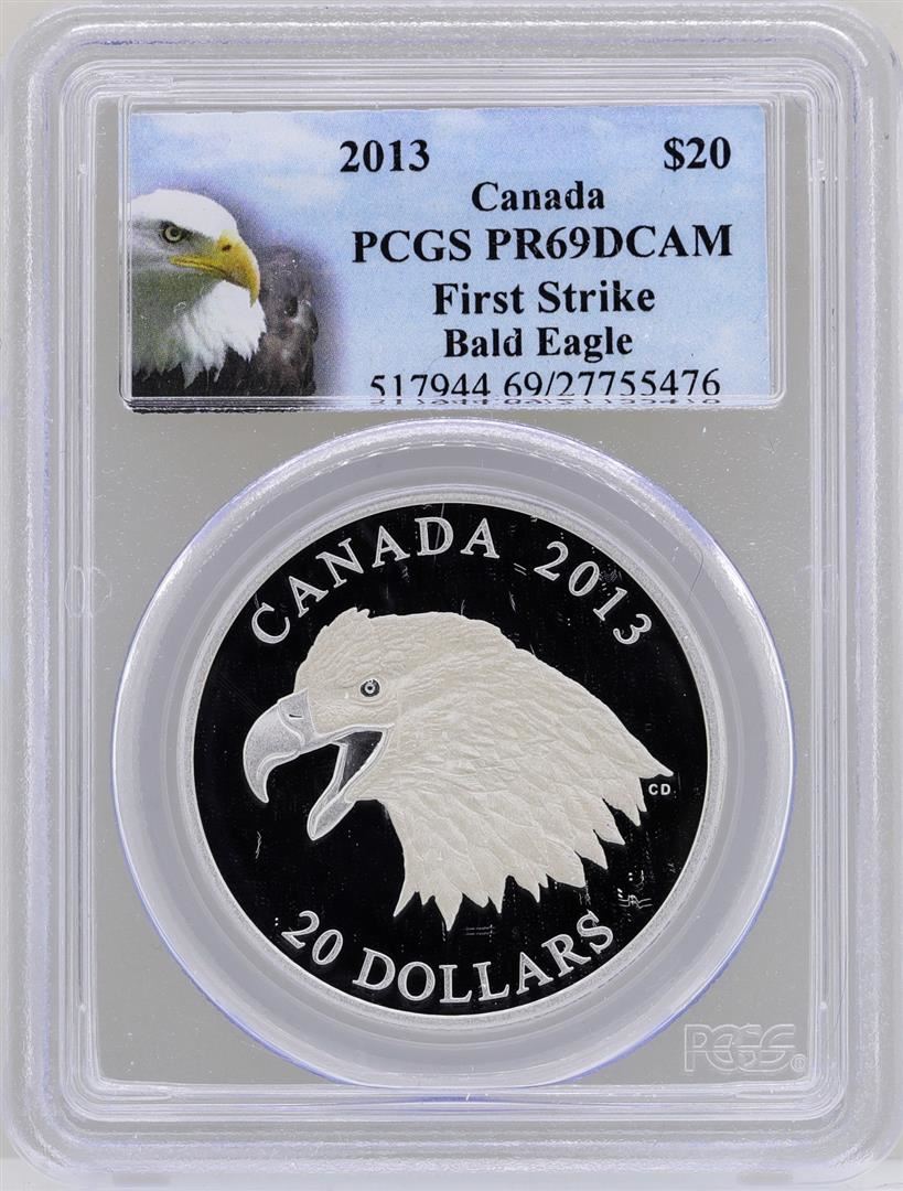 One 2013 $20 Canada Bald Eagle Silver Coin PCGS PR69DCAM. PCGS Graded.