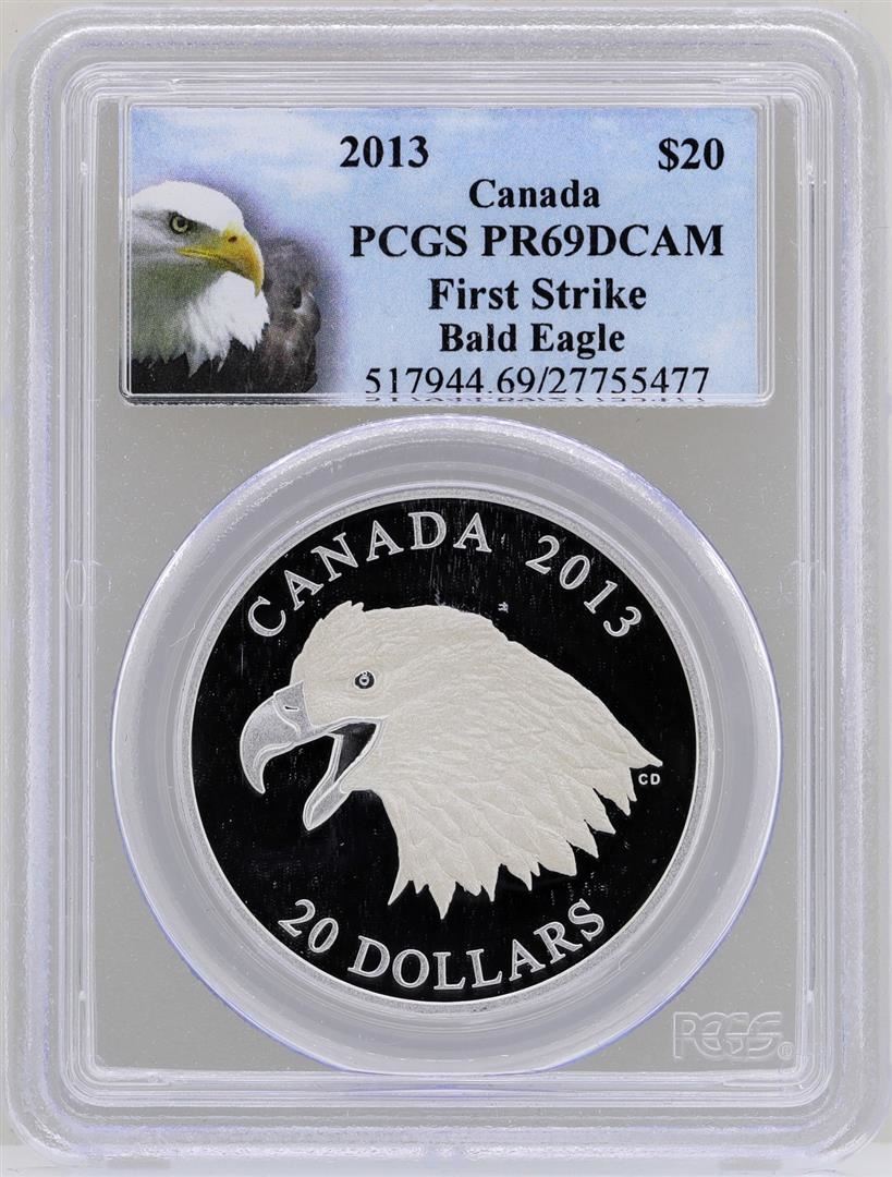One 2013 $20 Canada Bald Eagle Silver Coin PCGS PR69DCAM. PCGS Graded.