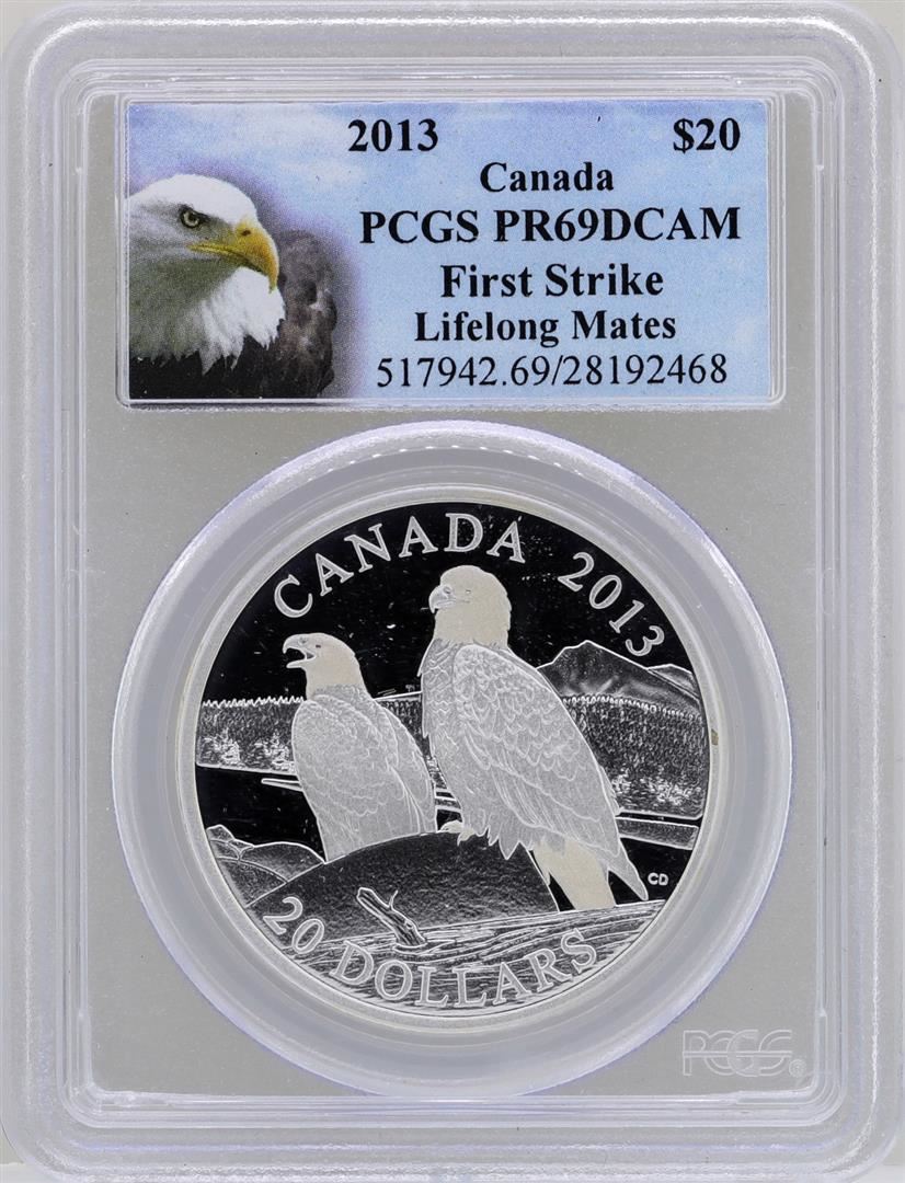 One 2013 $20 Canada Lifelong Mates Silver Coin PCGS PR69DCAM. PCGS Graded.