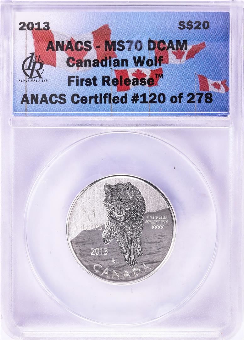 2013 $20 Canadian Wolf Silver Coin ANACS MS70 DCAM First Release