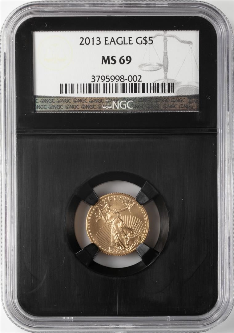One 2013 $5 American Gold Eagle Coin NGC MS69. NGC Certified.