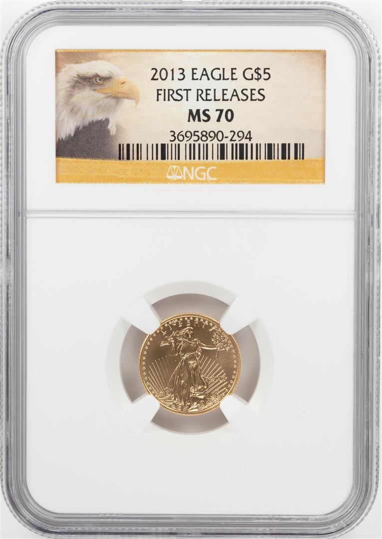 One 2013 $5 American Gold Eagle Coin NGC MS70 Early Releases. NGC Certified.